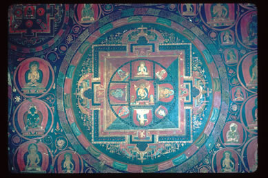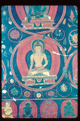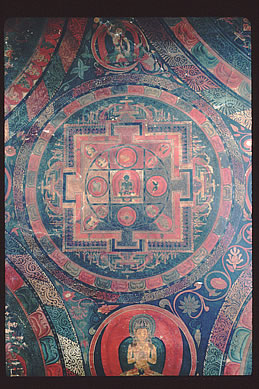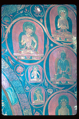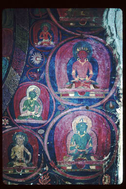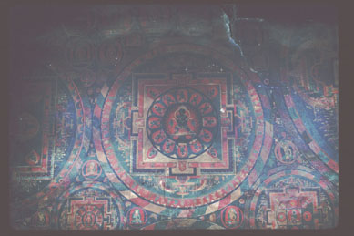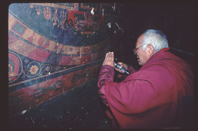 examining the inscriptions of wall paintings in Jampa, 1994.