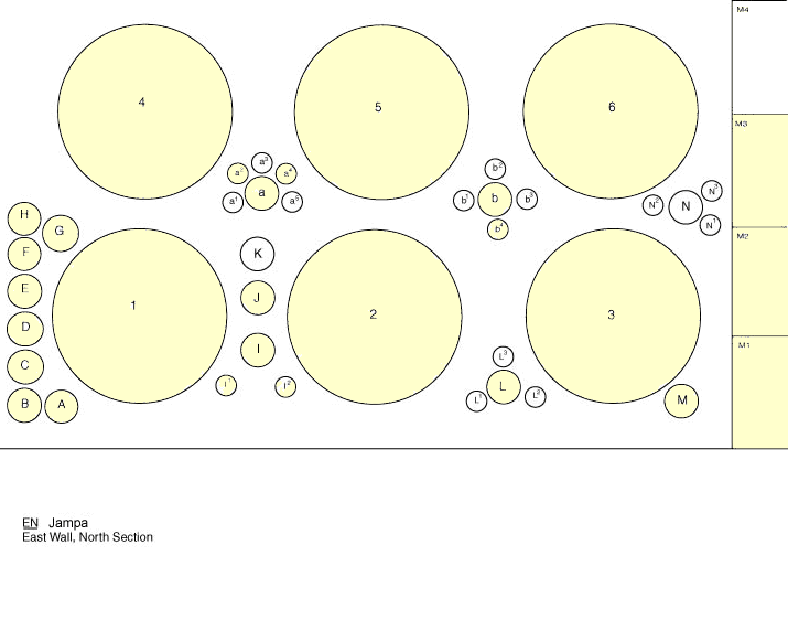 Jampa Gompa > Wall Layouts > Main Floor > East Wall > North Section The long dimensions of each mandala is approximately two meters.