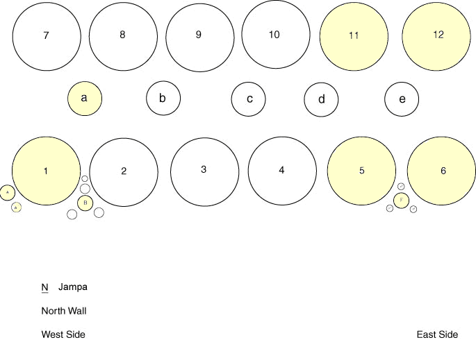 Jampa Gompa > Wall Layouts > Main Floor > North Wall The long dimensions of each mandala is approximately two meters.