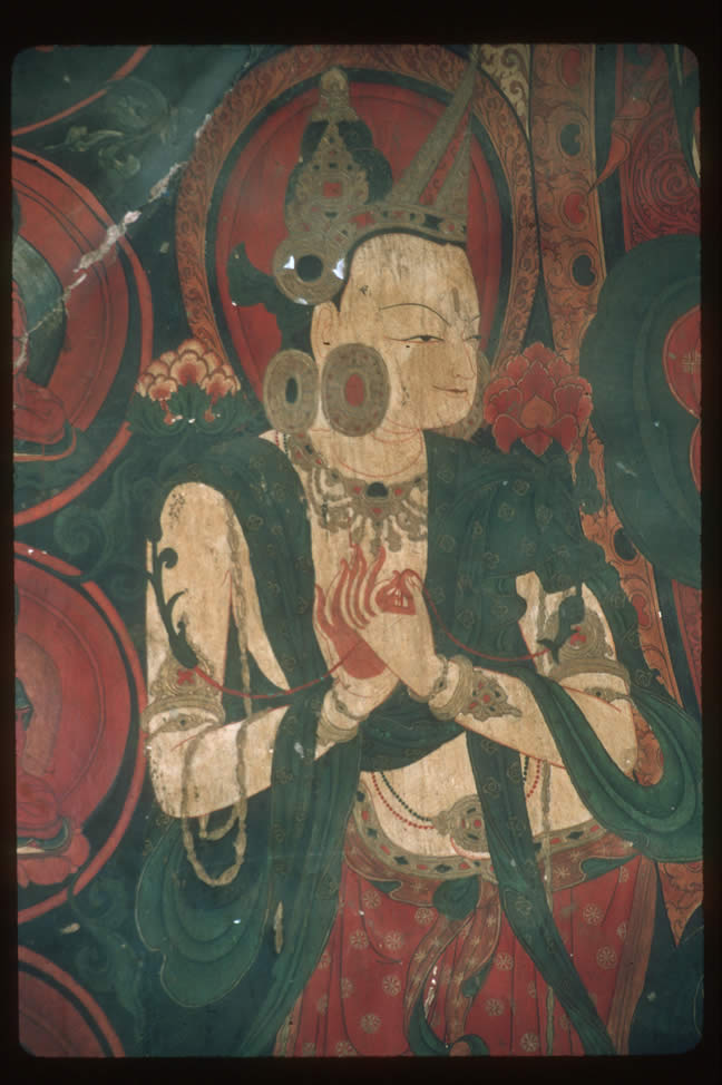 Thubchen Gompa > Wall Layouts > East Wall > Triad 3 > Left Bodhisattva > Closeup of Left Bodhisattva