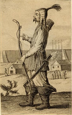 The most famous manuscript in the Military Collection is the diary kept by Jean Bapiste Antoine de Verger, an officer in Rochambeau's army during the American campaigns of 1780-81. This was transcribed by Mrs. Brown and incorporated in her book, The American Campaigns of Rochambeau's Army. The diary is especially prized for its watercolor sketches of Native Americans, ships, dragoons, and four soldiers of the Continental Army depicted here, including one of the earliest depictions of an African-American soldier.
