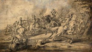 The collection contains thousands of original pencil sketches and watercolors along with mezzotints, lithographs, aquatints and other printed forms. Hundreds of artists are represented; there are original drawings by William Hogarth, Sir John Millais, and Sir John Gilbert. There are original caricature and genre drawings by Thomas Rowlandson and Sir John Tenniel. Two original pictures by Frederic Remington represent scenes of U.S. cavalrymen. A number of important twentieth-century American artists are included in the material from World War Two. There are many original artworks by leading French artists including seventeenth-century battle scenes by Jacques Courtois, caricatures by Draner and Job, figure studies by Eugene Lami, Hippolyte Bellange and Edouard Detaille, and sketches by Horace Vernet.