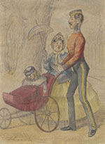 The thirty-nine years of peace prior to England's involvement in the Crimea (1854-1856) produced no new military heroes and few military portraits. Those that were painted show a noticeable decline from the majestic style that had previously characterized military portraiture. This decline in the volume of formal military portraiture may also have been brought about by a change in the public attitude toward the common soldier. In the recent past the soldier had been viewed as a "potentially dangerous wastrel." A young recruit wrote in his journal that his mother would have preferred him "in his grave than gone for a soldier." When discharged from the military, soldiers rarely had a trade that would enable them to secure employment. Army pensions were not enough to live on and, because of the long enlistment requirement (twenty-one years), few soldiers had friends or family with whom they could live upon discharge. Indeed, soldiers were obligated upon enlistment to swear that they were not married and were encouraged to break all ties with home and family.