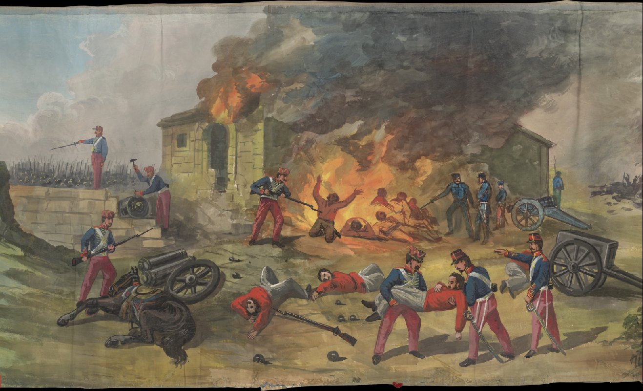 Battle of Vulturno. Neapolitans burning the wounded Garibaldians