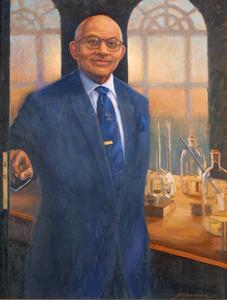 Boston-artist Robert Freeman based this portrait on a photograph of Nabrit first published in the Brown Alumni Monthly . In Freeman's portrait Nabrit appears in the doorway of his chemistry laboratory in Arnold Lab. The portrait was unveiled at a Brown Corporation tribute to Dr. Nabrit at commencement in 1999, three years before his death in December 2003 at age 98.
