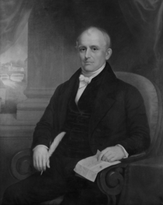 This portrait was painted by James Sullivan Lincoln, who copied it from another painting he made of the same subject. Lincoln was born in 1811 in Taunton, Massachusetts. When he was fourteen, he was apprenticed to a Providence engraver. He began painting as well, and eventually became the first president of the Providence Art Club. After 1837, his work consisted entirely of portraits. He died in Providence in 1888.