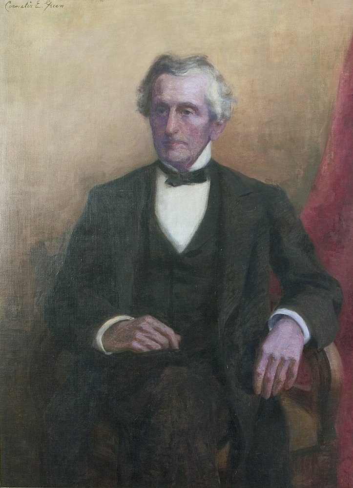 This portrait of Allen was painted by Cornelia Elizabeth Green, a relative of Allen's wife (and also the niece of Samuel Greene Arnold, who is depicted in Brown's portrait collection). Cornelia Elizabeth Green was born in Providence in 1872. She attended Wellesley College, graduating in 1892, and then continued her studies at the Rhode Island School of Design and at the School of the Museum of Fine Arts, Boston. She painted this portrait from photographs and from memory. It was completed in 1900. Green died in 1901 in Philadelphia, the same year that Brown received the portrait from Allen's daughter, Candace Allen.