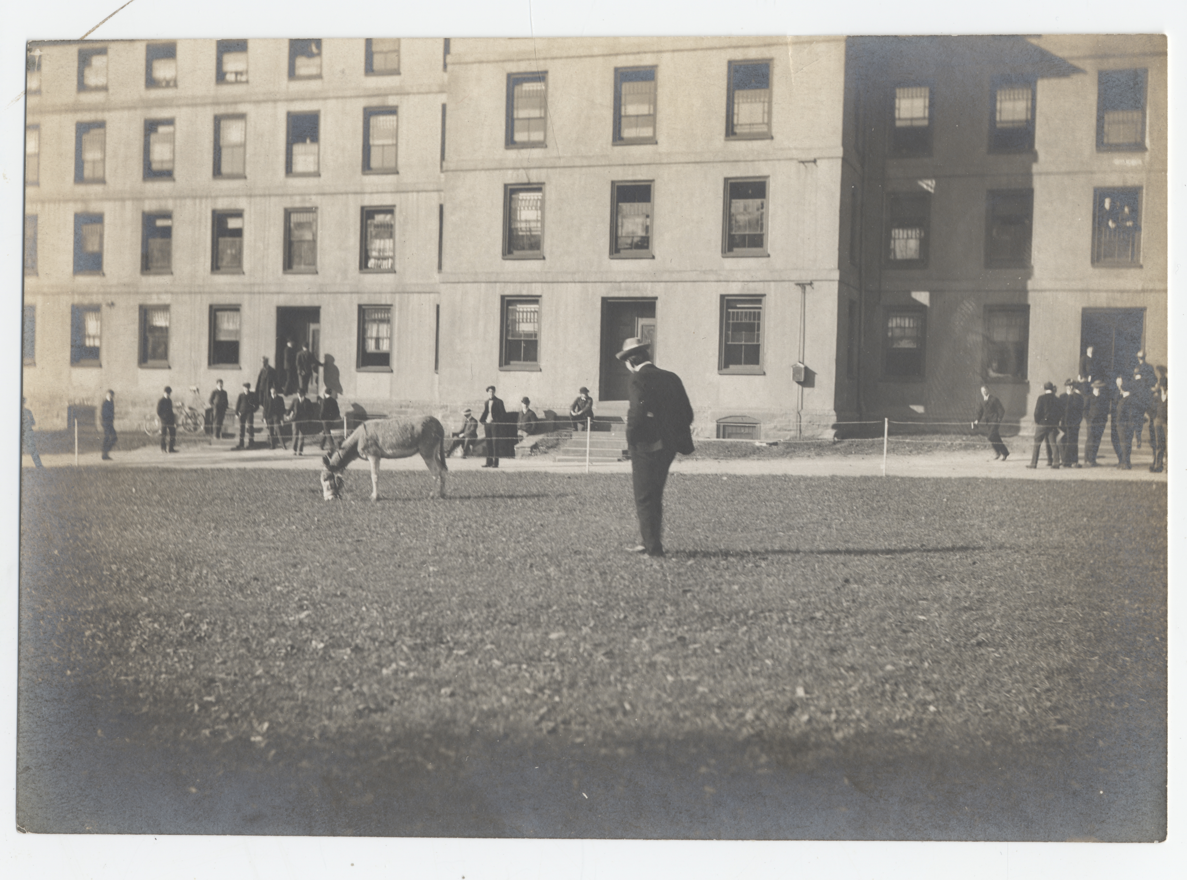 In 1905 the Celebration Committee voted to have a live bear at the Dartmouth football game. Douglas Swaffield ’06 contracted with Roger Williams Park for a bear named Dinks. On game day Dinks refused to leave his cage, but his mate Helen stepped forward to save the day. Helen received a standing ovation as she entered Hampton Park on November 27.