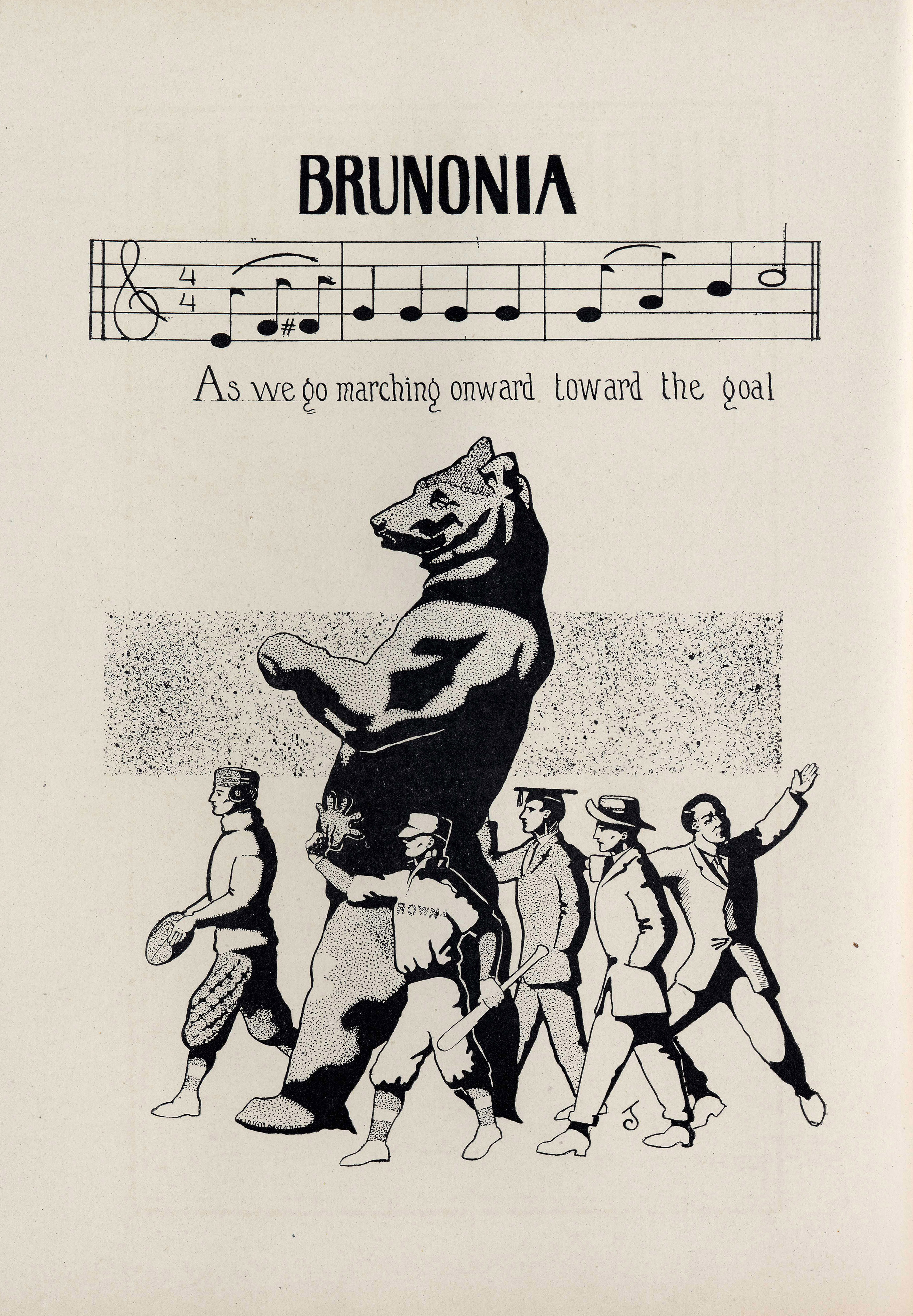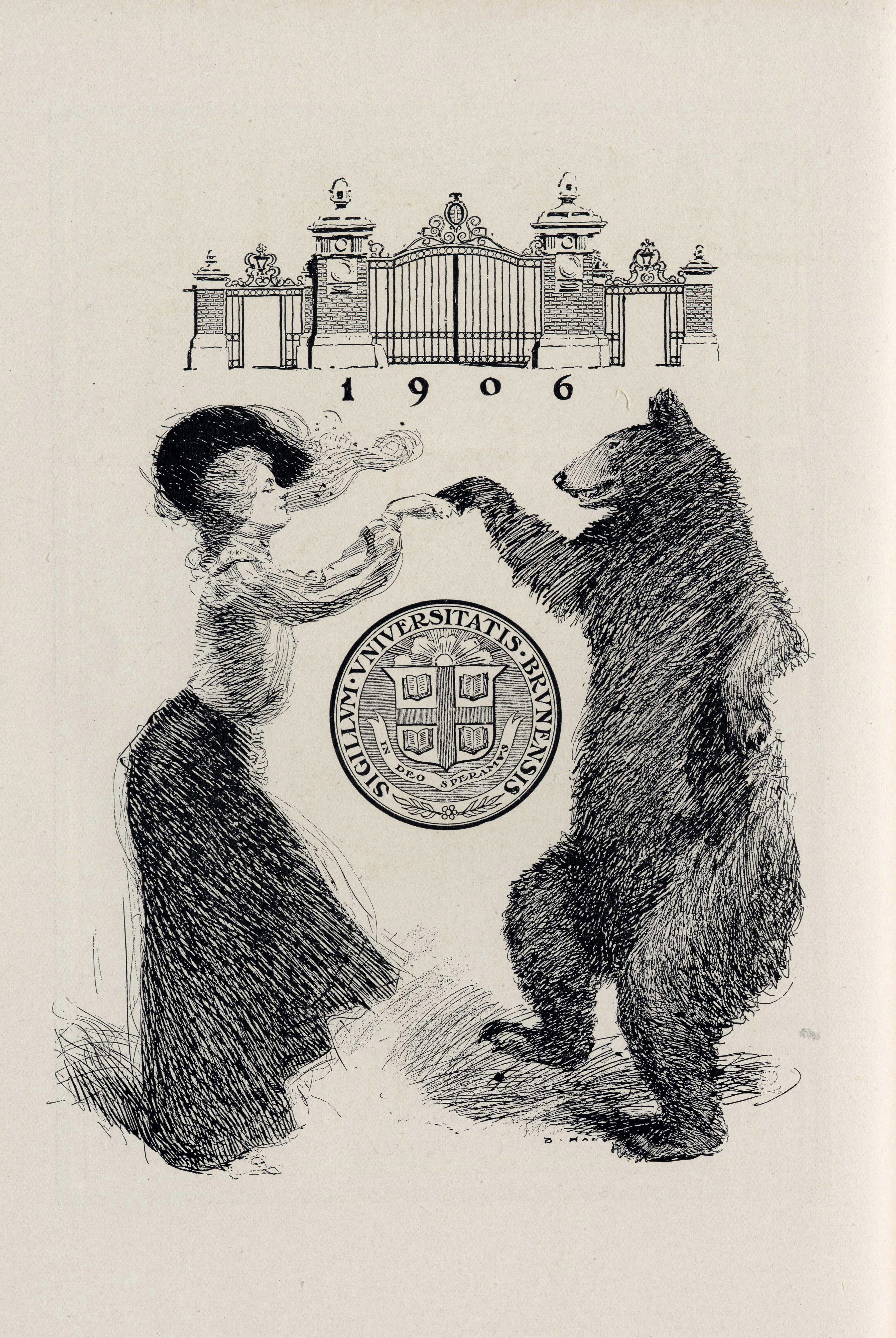 After T. F. Green’s introduction of the bear, students began to embrace the concept. The yearbook, Liber Brunensis became an important platform for bear images. Drawings by student artists helped gain visibility for the bear symbol in the absence of live bear mascots.