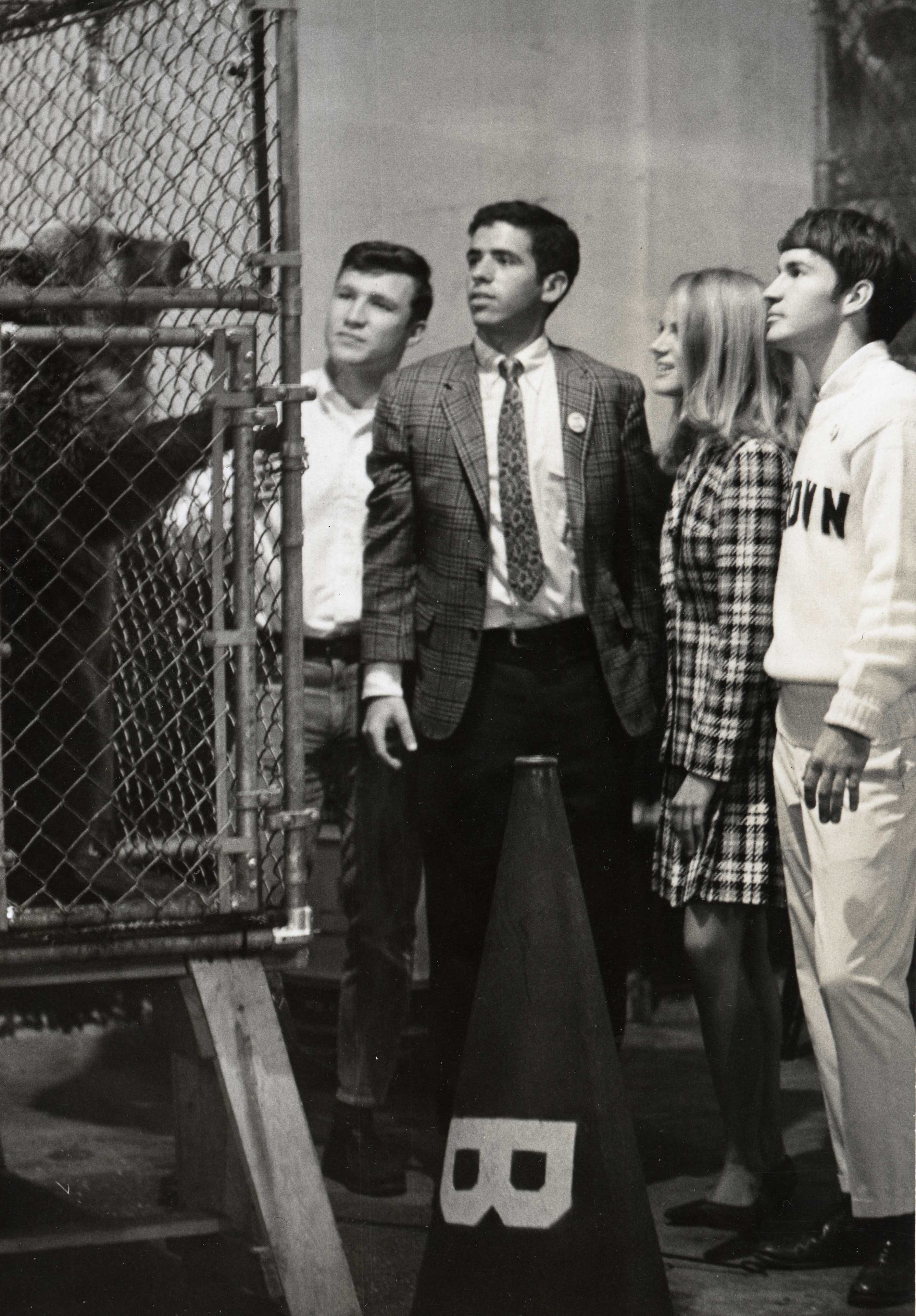 In the mid-1960’s interest in live bear mascots was waning. In 1967 with no bear in sight, M. Charles Bakst ’66 and his wife Elizabeth ’67 stepped forward. The Bakst’s were friends of Athletic Director Dick Theibert and with his approval, “took on the assignment of locating a bear.” After contacting several state and national parks, one finally came through. The cost was $75 and the couple paid $37.51 which gave them naming rights. Charlie named the animal Liz Bear in honor of his wife. Liz Bear was Brown’s final live bear mascot and resided at the Roger Williams Park Zoo.