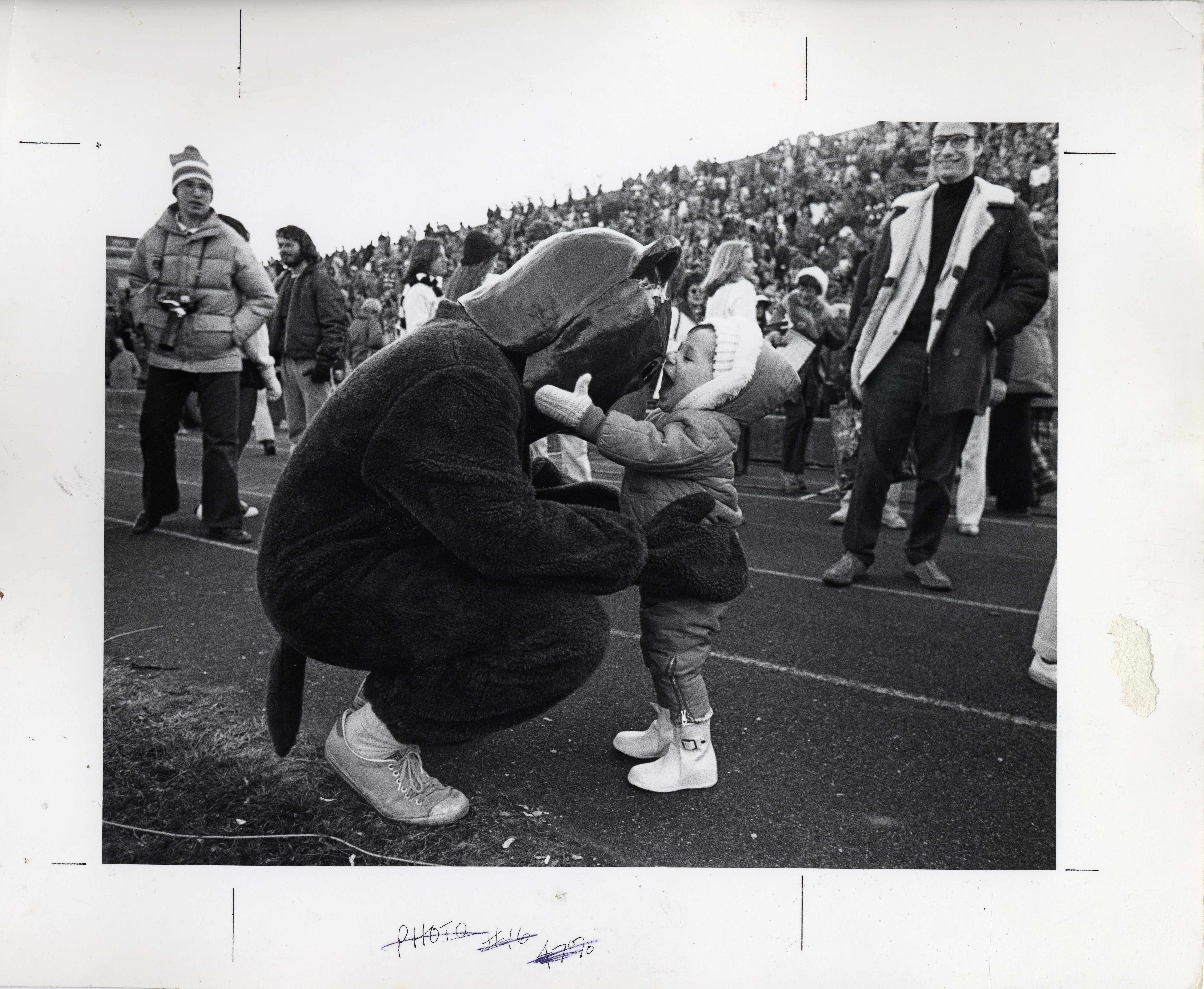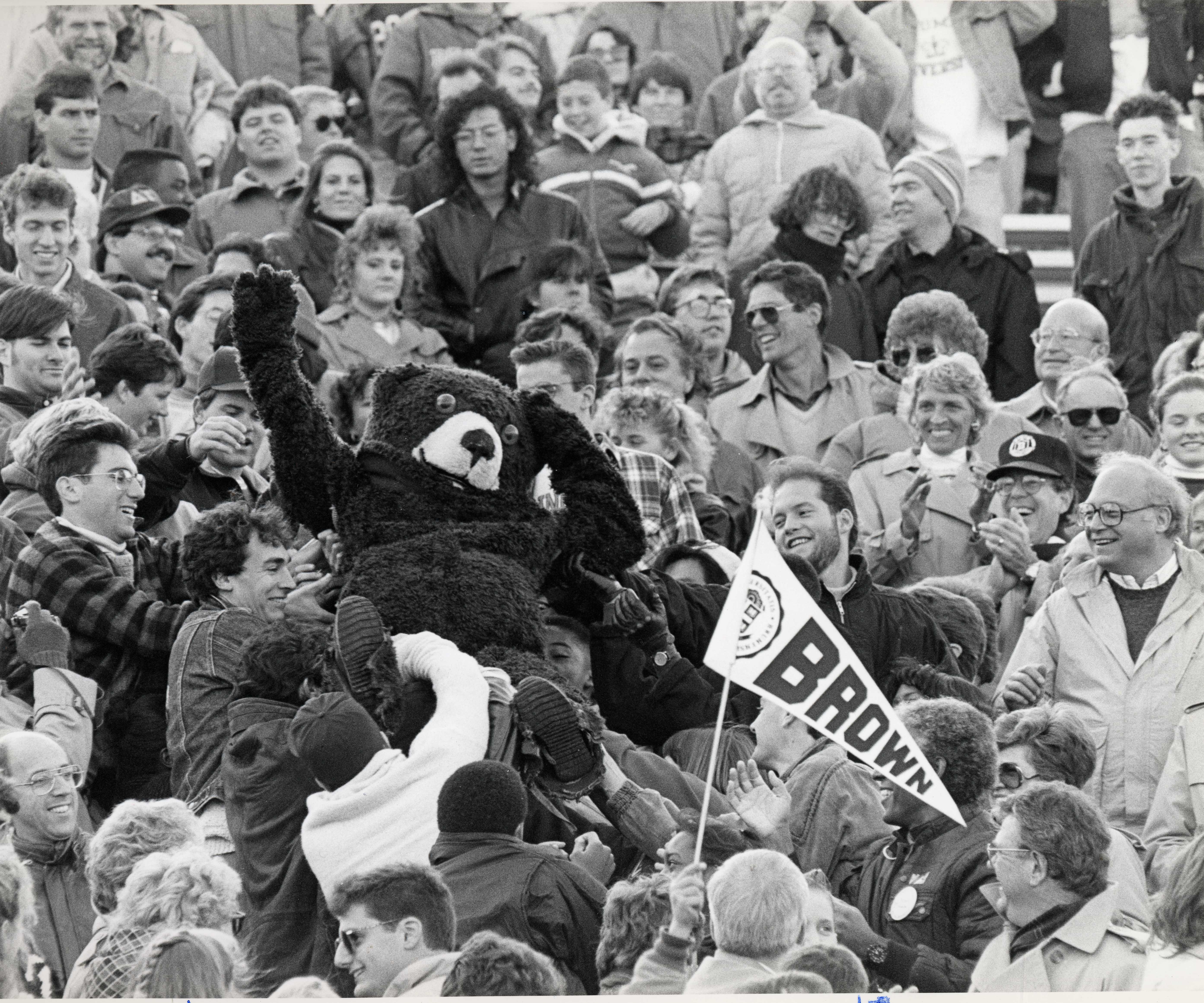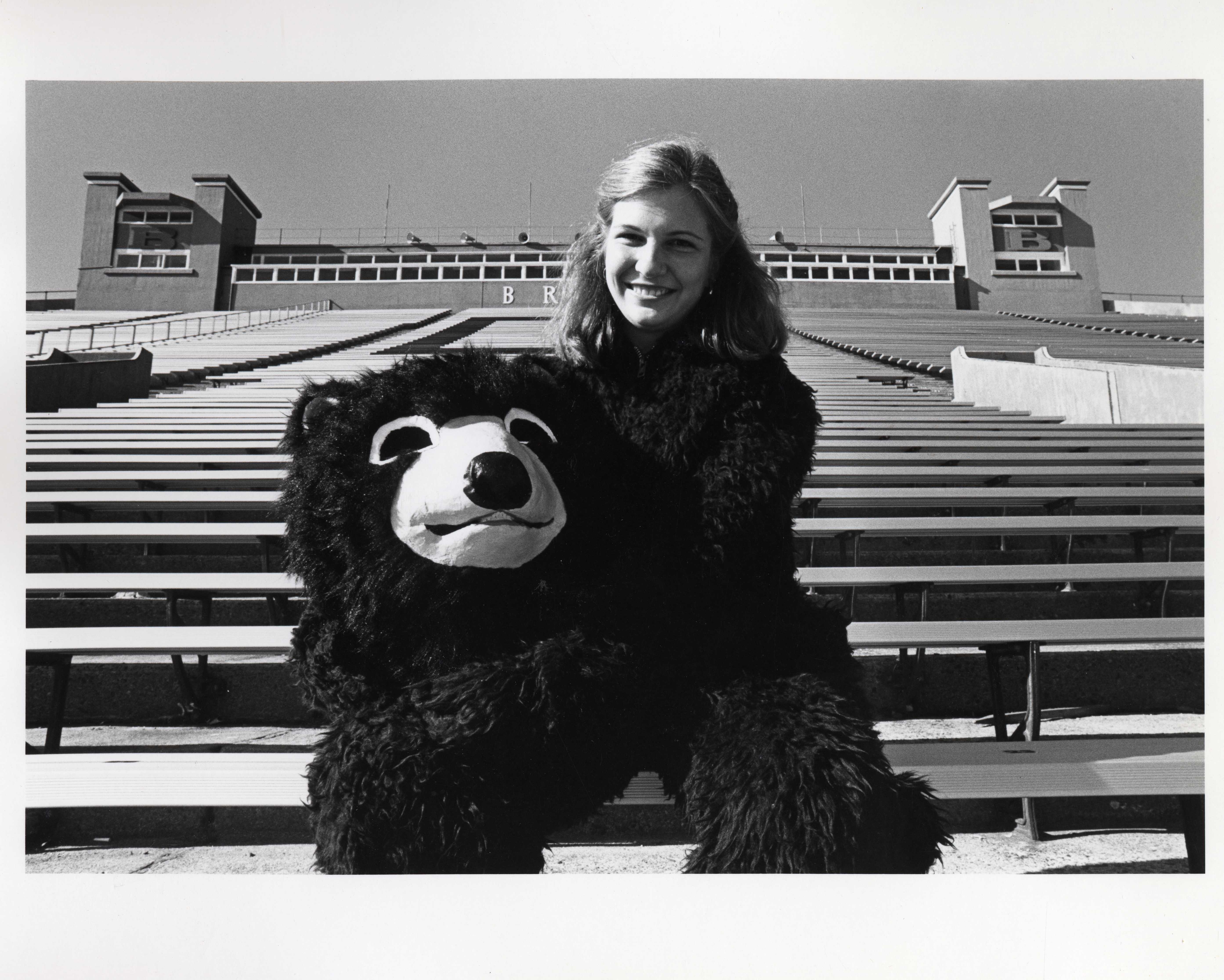Barbara Weiss Kimmel ’83 became the first female mascot in the Ivy League when she donned the Bruno costume in 1980. According to “Ms. Bruno”, “Being the bear enabled me, a person who doesn’t like to draw attention to herself, to be a bit crazy – dancing in front of hundreds of people, being photographed hugging complete strangers.” In addition, Barbara came to the realization that being inside the bear suit had an additional benefit; “I didn’t need to smile for those photos.”