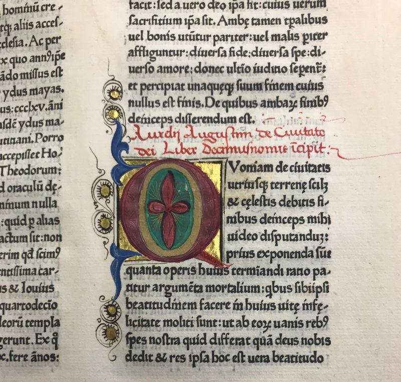 Images from Aurelius Augustine’s City of God, printed in Subiaco, Italy by Sweynheym and Pannartz, their last before moving to Rome.