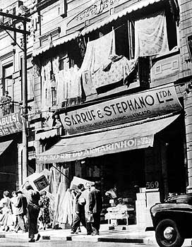 This Syrian bazar in São Paulo, pictured in 1940, bears the multi-ethnic name “Sarruf and Stephano, Ltd.” Courtesy of Wikimedia Commons.