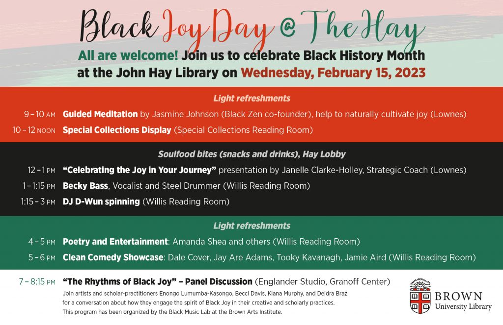 The John Hay Library will host its first celebration of Black Joy Day on Wednesday, February 15. The Hay invites the Brown community and members of the public to enjoy the full day of activities.
