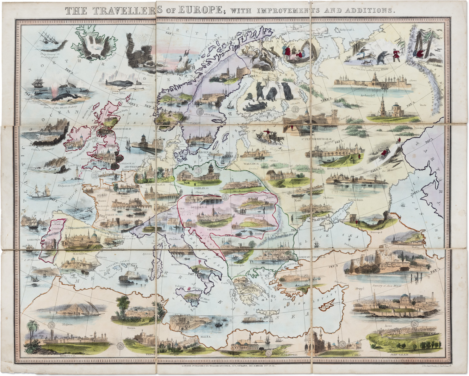 The Travellers of Europe is a successor of the dissected map tradition, meant to inspire players to study the world by showing handsome images of cities like Cairo and Madrid and natural wonders like the Giant’s Causeway. Each of the landmarks that are shown would have a corresponding informational entry in the accompanying booklet.