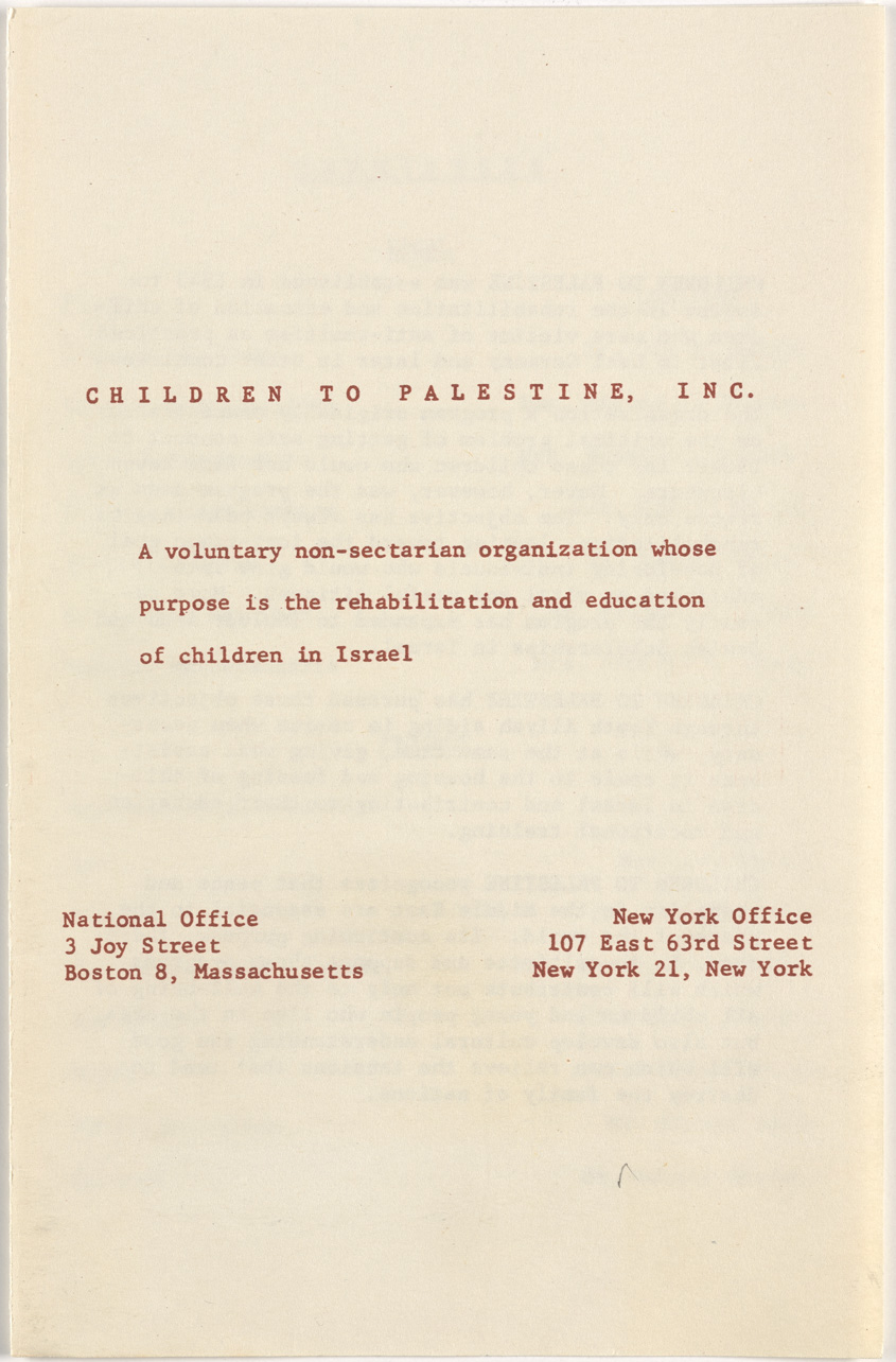 In 1943, Martha Sharp helped found Children to Palestine, an organization dedicated to resettling Jewish refugee children from Europe and North Africa in Mandatory Palestine. Children to Palestine regularly partnered with Youth Aliyah, a program for rescuing Jewish children from Nazi occupied zones, and Hadassah, a women’s Zionist aid organization. After the war, Children to Palestine turned its efforts to building and enriching communities, heavily supporting the youth village of Ben Shemen, established by Dr. Siegfried Lehmann in 1927.