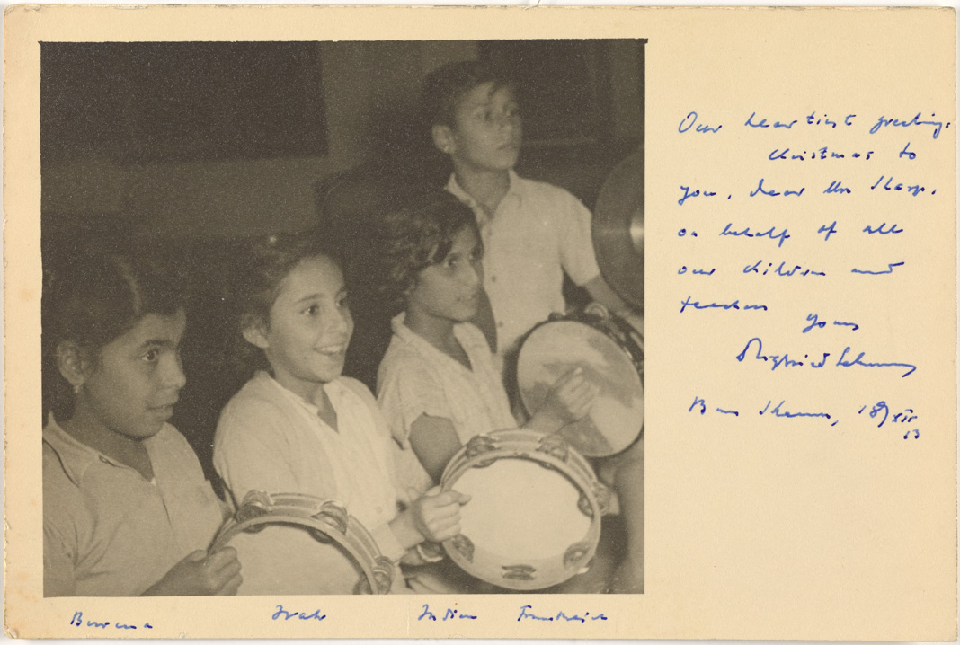 Greeting card with photograph of Ben Shemen children, circa 1955
