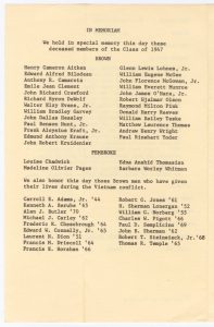 And life did go on, but it was not the same. “I have always said to people that that was the turning point in my life” says Connie. “That was the event that changed everything, and still dominates it….I will always be a Vietnam widow. It always defines me.” Mike’s death marked a turning point in Connie’s political and personal life. Brutal footage of the war kept streaming into American living rooms, and the antiwar movement gathered strength as the conflict intensified. Connie joined the antiwar protests on Brown’s campus, and in the fall of 1968 and again in December of 1969, Connie published articles in support of the protest movement in the magazine of the Providence Junior League. “It became a different war after his death,” she reflects.