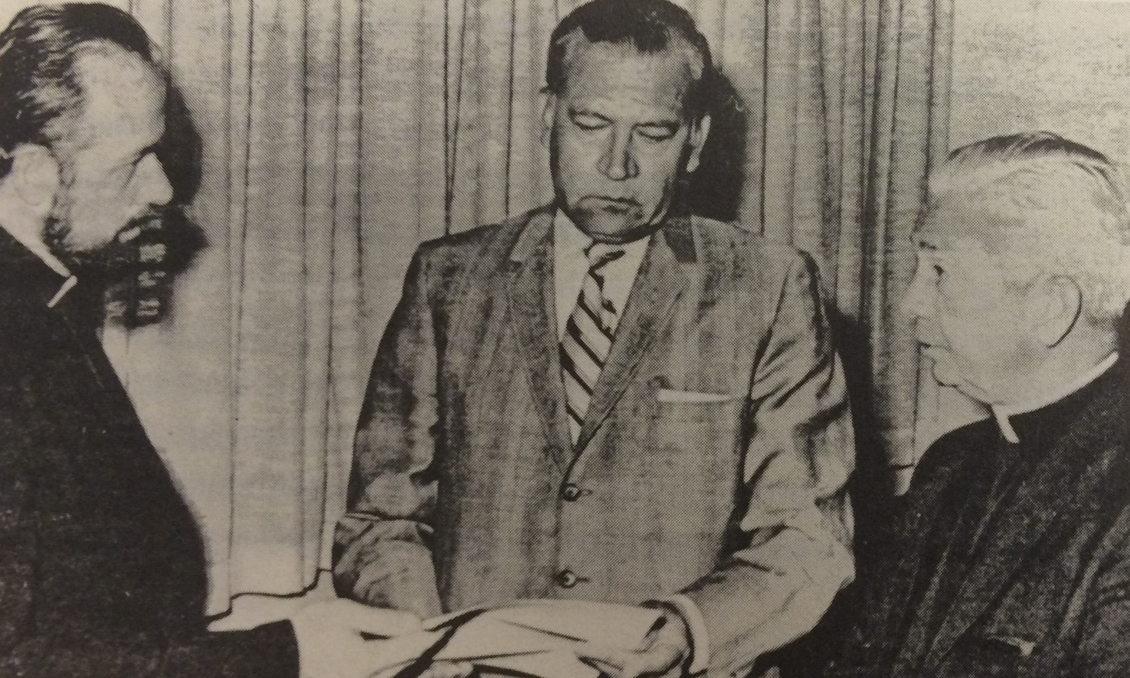 Reverend William Wipfler, Father Frederick McGuire, and Luiz Reque in Washington, 1970