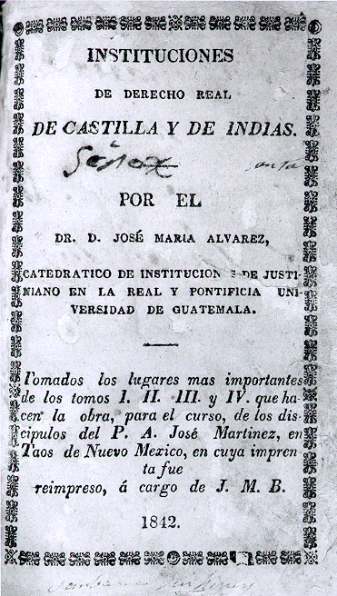1842, on the press of Jesus Maria Baca, one of the first printers in the