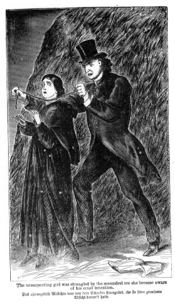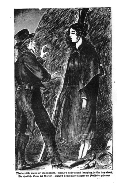 The illustrations are from The terrible hay-stack murder. (Philadelphia: Barclay & Co., 1878?), in the Sidney S. Rider Collection.
