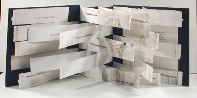 Glick, Chandra Selections from William Blakes Auguries of Innocence 1998-9 Pop-up, typeset, handmade paper, etching, accordion folded.