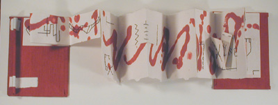 Pulp-painted handmade paper; hand stitched accordion fold.