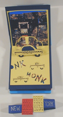 Accordion-fold pop-up with collage.