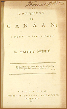 ![]() | *Dwight, Timothy. The conquest of Canaan; a poem in eleven books. By Timothy Dwight. Hartford: Printed by Elisha Babcock, 1785. Harris Collection of American Poetry and Plays |