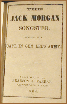 *The Jack Morgan songster. Compiled by a captain in Gen. Lee's army. Raleigh : Branson & Farrar, 1864. Bookplates of Caleb Fiske Harris and Henry B. Anthony. Harris Index no. 3360. Harris Collection of American Poetry and Plays | ![]() |