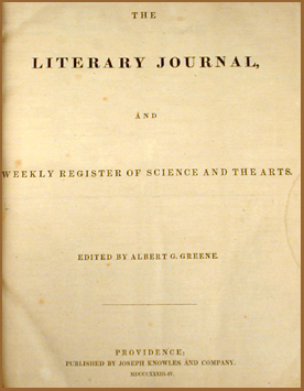 *The Literary journal, and weekly register of science and the arts. Edited by Albert G. Greene. Providence, R.I. : Joseph Knowles and Co., [1833-34] Harris Collection of American Poetry and Plays | ![]() |