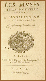 *Lescarbot, Marc. Les muses de la Nouvelle France. A Monseigneur le chancellier ... Paris, Jean Millot, 1609. Bookplates of John Carter Brown and Henry Bown Anthony; note by John Russell Bartlett, documenting exchange between John Carter Brown and Caleb Fiske Harris. Harris Collection of American Poetry and Plays | ![]() |