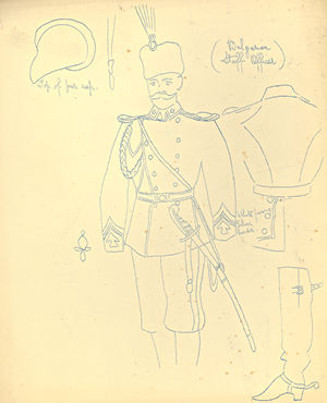 Costume designs for Arms and the Man, ca. 1894, with notations in