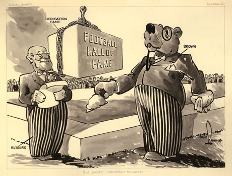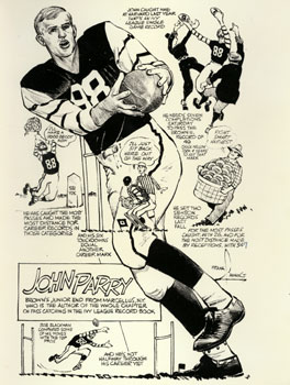 ![]() In the 1963 season John Parry 65 captured six Ivy and five Brown pass-receiving records. Cartoon by Frank Fanning in the Providence Journal. |
