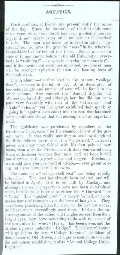 ![]() The annual Brown Paper for 1859 noted the entry of the Brown scull "Atalanta"
