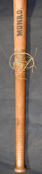 ![]() Bat belonging to Wilfred H. Munro, Class of 1870. One of his undergraduate baseball feats when the game was played on the campus was his foul ball to right field which broke all eight panes of a window in University Hall. |