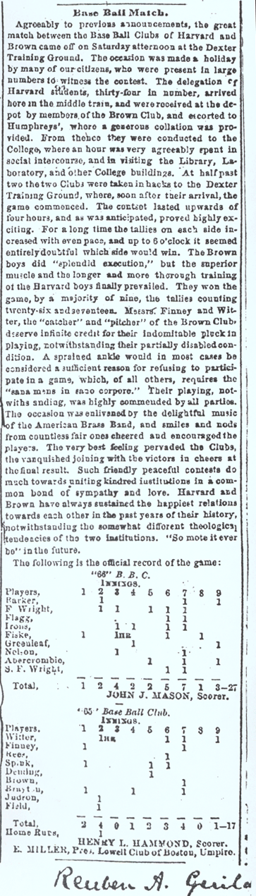![]() ![]() The Graftons vs. Brown University Club, May 22, 1875 |
