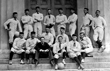 ![]() The Class of 1870 was the team that beat the "Lowells" of Boston. The varsity had been challenged by the Lowells, but the Brown players, realizing that the varsity had only one player not in the Class of 1870 and wanting to put the Lowells in their place, told them that Smith (the only player not in the Class of 1870) was ill, so the varsity could not play, and offered them a game with the sophomore team. The Lowells were offended and also defeated, 23-19. |