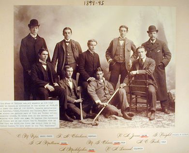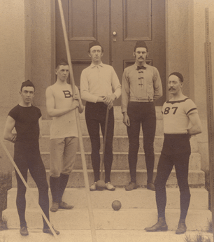 ![]() Hockey came to the United States in 1895. The game was learned by a group of collegian ice polo players, who traveled to Canada in the winter of 1894-95 to compete and compare the two games. The Brown men of the ice polo team were Byron Wilson '97, William Jones '96, George Matteson '96 and Alexander Meiklejohn '93. |