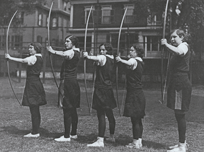 Archery was a woman's sport in the 1930s, and for convenience intercollegiate telegraphic tournaments were held, at which each college competed on its own premises and telegraphed its members' scores.