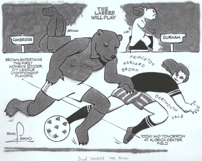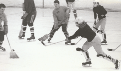 Beginning in 1964, women hockey players learned the game by practicing with the men, and raised their own funds. One fund raiser was a game against the J.V. men's team, who played with brooms.