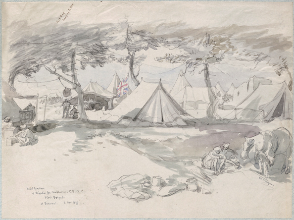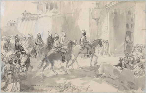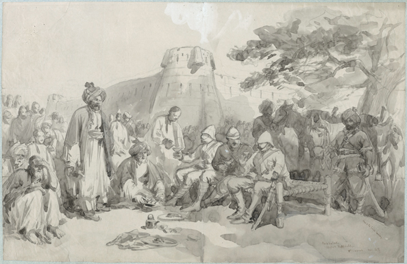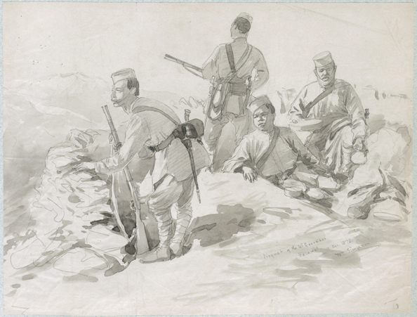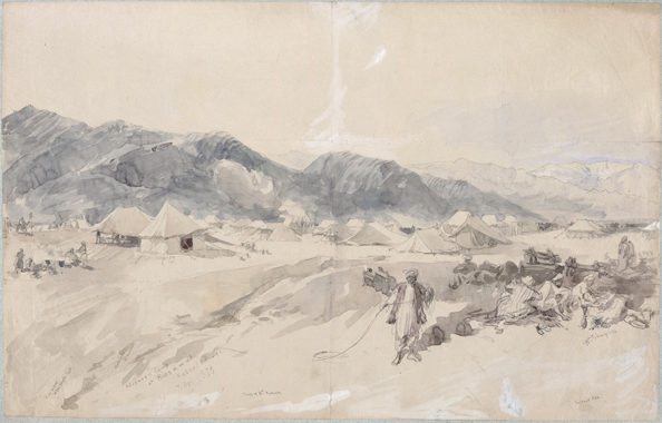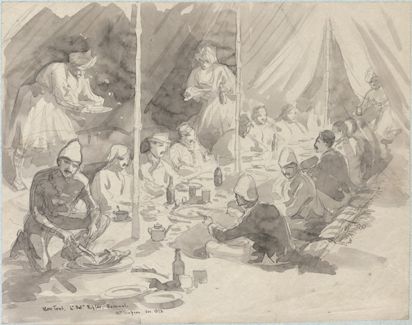 London Illustrated Times, traveling with the British Army in 1878-1879. He sent the original artwork back to London via the mail routes to Bombay, through the Suez Canal and up to London. Engravers with the Times in London converted his artwork into etchings that were printed in the weekly newspaper.