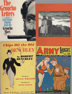 The literature of wit and humor was another genre new to the John Hay in the 1990s. In 1993, brothers Bernard and Saul Miller gave to Brown their 40,000 volume library, a collection devoted exclusively to humorous writing, primarily American of the 19th and 20th centuries. Every conceivable topic is included in the collection, with subjects ranging from medicine and law to sports, politics, religion, and of course, sex. Ethnic humor, political cartoons, comic novels, cartoon books, army joke books from World War II, even vaudeville routines are to be found in the Miller Collection. Among the thousands of authors are such major figures as Petroleum V. Nasby, Joel Chandler Harris, Groucho Marx, Ogden Nash, Charles Schulz, and Gary Trudeau.