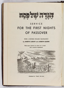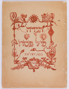 This Passover Haggadah was printed for members of Kibbutz Givat Hashlosha in the Spring of 1947. It is a non-traditional Haggadah which includes texts and illustrations about life in the ghettos and concentration camps of Europe; it also touches on the difficult period of illegal immigration to Palestine. For many years, Passover was seen as the main holiday on the kibbutz. The Passover Seder, with the theme of redemption at its center, became the most important event of the year and kibbutzim often created their own versions of the Haggadah text.