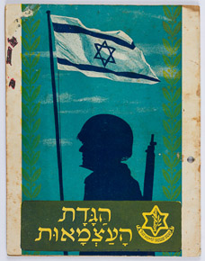 Published by the public relations division of the Israel Defense Forces, this original and innovative text celebrating Israel’s Independence Day follows the format of the Passover Haggadah. Profusely illustrated with photographs and emblems, it is the work of Aharon Meged (b. 1920), a kibbutznik , author and editor of several literary magazines. Because of its appropriation of traditional religious tropes, it appeared as an unwarranted attempt to create new liturgy and was thus deemed too controversial by many traditional religious authorities, who demanded its withdrawal from publication. Surviving copies are extremely rare due to censorship.