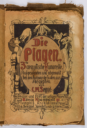 Die Plagen was part of a three-volume set written and illustrated by Carl Maria Seyppel (1847-1913). Entitled, Aegypstische Humoreske: Schlau, Schlauer, am Schlausten; Er-Si-Es; Die Plagen, these books published from 1882-85 are illustrated anti-Semitic verse parodies