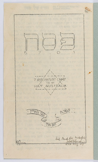 An exceedingly rare Haggadah produced in Australia by German and Austrian Jewish refugees who were held as prisoners by the British under suspicion of being enemy-aliens.