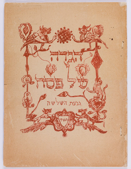This Passover Haggadah was printed for members of Kibbutz Givat Hashlosha in the Spring of 1947. It is a non-traditional Haggadah which includes texts and illustrations about life in the ghettos and concentration camps of Europe; it also touches on the difficult period of illegal immigration to Palestine. For many years, Passover was seen as the main holiday on the kibbutz. The Passover Seder, with the theme of redemption at its center, became the most important event of the year and kibbutzim often created their own versions of the Haggadah text.