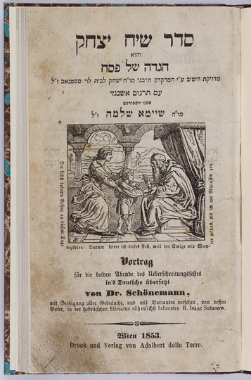 An illustrated Haggadah Translated into German by Dr. Shema Solomon Schoenemann, with the addition of all the customs, provided by his father, Rabbi Isaac Levi Satanow. Satanow (1732–1804), a remarkable philosopher, poet, Talmudist, lexicographer, and commentator, was one of the most versatile and gifted writers among the Berlin maskilim.
