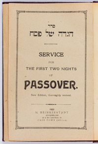 Cape Town is the oldest Jewish community in South Africa and was for many years, the principal center of Jewish communal life. This volume is the first Haggadah and the sixth Hebrew book to be printed in Cape Town. It includes the text in both Hebrew and English and is decorated with a series of illustrations based on those of the Amsterdam Haggadah, 1695.